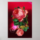 Elegante, colorido design floral estilo vintage, rosa repolho rosa em fundo burgundy vermelho..