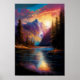 À medida que o sol se despede, um pôr do sol respirador pinta o céu sobre um lindo rio da montanha. Em ambos os bancos, os pinheiros altos são testemunhas silenciosas do espetáculo. À distância, uma montanha majestosa completa essa paisagem serena e inspiradora, deixando uma impressão indelével sobre aqueles que a observam.