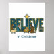 Fun festive poster with a beautiful nativity scene in the word "Believe" complete with baby Jesus in a manger, Mary, Joseph, shepherd, sheep and a donkey. Spread holiday cheer and decorate with this Christmas poster you can personalize. Great gift idea for the Christians you know this Christmas.