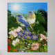 belo quadro para postar 2 pássaros entre flores, uma pintura assinada por marroquino, para amantes de pássaros e salvar amantes da natureza e dos animais