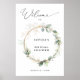 Cartaz de boas-vindas para chá de noiva com elegantes elementos verdes e dourado falso, apresentando folhas suaves em aquarela e detalhes dourados digitais (design gráfico, não é folha de ouro verdadeira). Perfeito para receber os convidados com estilo.