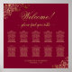 Bem-vindos aos seus convidados para a sua recepção de casamento com este maravilhoso gráfico de 10 assentos de mesa. O design é simples, elegante, elegante e vírgula, apresentando um título de caligrafia com guião dourado sobre fundo de burgundy, marrom ou vinho tinto. Há ornamentados de folhas falsas e espirais nos cantos fazer ainda mais sofisticadas e na moda. Com espaço para até 100 convidados - 10 assentos por mesa - este quadro de assentos facilitará aos seus convidados a encontrar as suas mesas, ao mesmo tempo que adiciona elegância e beleza à sua recepção.