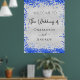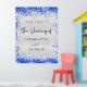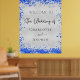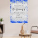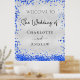 Um fundo prateado falso, decorado com confete azul real. Com o texto: Bem-vindo ao Casamento de... Personalize e adicione seus nomes.
