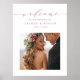 Letreiro de boas-vindas de casamento moderno (cartaz) com caligrafia elegante em rosa dourado e uma foto. Para personalização mais avançada deste design, clique no link Personalizar Mais para alterar a fonte, o tamanho e a cor.