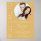 Cartaz de boas-vindas de casamento moderno e elegante em tons monótonos de champanhe com inserção de foto.