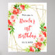 Este belo e elegante sinal de boas-vindas apresenta melancia aquarela, romã, morangos, cerejas e folhagens. O texto combina fontes manuscritas e serifadas para um visual elegante e moderno. Isso é perfeito para um aniversário rústico de primavera ou verão.