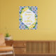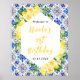 Este sinal de boas-vindas divertido e caprichoso apresenta limões cítricos em aquarela e folhagens em um fundo de azulejos mediterrâneos. O texto combina fontes manuscritas e serifadas para um visual elegante e moderno. Isso é perfeito para um aniversário rústico de verão.