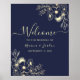 Poster Bem-vindo ao Casamento Floral Dourado da Marinha