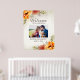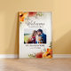 Elegante cartaz de boas-vindas floral em aquarela laranja queimada para o seu casamento de outono. Este sinal é personalizado com uma foto especial de noivado e texto, "Bem-vindos ao nosso casamento". O nome da noiva e do noivo e a data do casamento são impressos na parte inferior.