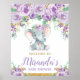 Poster Bem-vindo ao Chá da Bebê do Elefante Floral Roxo