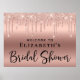 Um cartaz de boas-vindas elegante e sofisticado para o seu chá de noiva, apresentando brilho falso dourado rosa e "Chá de Noiva" escrito em uma fonte estilosa. Personalize facilmente o nome da noiva.