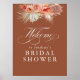 Sinal de boas-vindas de flores de terracota e grama das pampas para chá de noiva