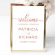 Um sinal de boas-vindas ao casamento da caligrafia. Fácil de personalizar com seus detalhes e adicionar sua própria cor de fundo. Por favor, sinta-se à vontade para me contactar se tiver algum pedido especial. NOTA: para obter assistência sobre pedidos, envio, informações sobre produtos, etc., entre em contato diretamente com o Atendimento ao cliente da Zazzle https://help.zazzle.com/hc/en-us/articles/221463567-How-Do-I-Contact-Zazzle-Customer-Support-.