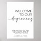 Enquadre esta poster de estilo mínimo 'Bem-vindo ao nosso começo' para fazer seu próprio sinal de boas-vindas ao casamento se você está tendo um casamento simples, elegante e subestimado. Os nomes e a data abaixo podem ser editados