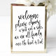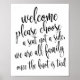 Um elegante cartaz de casamento de vanguarda, mostra o texto "Bem-vindo, por favor escolha um assento não um lado, somos todos uma família quando o nó está amarrado" em uma fonte extrovertida, a textura do pincel adiciona um sentimento espontâneo e brincalhão. A cor de fundo pode ser personalizada de acordo com as suas necessidades e preferências, contacte-me se tiver alguma solicitação especial.