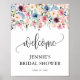 Este sinal de boas-vindas apresenta um belo design floral de gota de aquarela, título em letra de caligrafia e seu texto personalizado. Use o formulário de modelo para adicionar sua personalização.