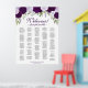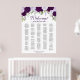 Este lindo quadro de casamento acomoda até 250 nomes ordenados por ordem alfabética. O tema design boho chic apresenta uma borda de rosas de aquarelas pintadas à mão de violeta, lavanda e ameixa roxa, complementada por ranhuras de folhas de eucalipto e folhagem de jardim. O título elegante da caligrafia diz Bem-vindo! Por favor, encontre sua mesa. Os nomes do casal e da data do casamento aparecem no fundo. Este gráfico de assentos maravilhoso facilitará aos seus hóspedes encontrar seus assentos enquanto adiciona beleza, estilo e charme à sua recepção de casamento.
