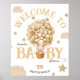 Poster Bem-Vindo O Chá de fraldas Beige Dourado Da Cesta