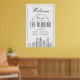 Saudações aos bons que viajaram de perto e longe para vir à sua cerimônia de casamento com esta adorável poster! É certo colocar um sorriso no rosto enquanto eles caminham na igreja, salão de baile, ou locais de sua cerimônia, e servem como uma apreciação da sua presença. A poster de boas-vindas ao estilo deco moderno e divertido é especificamente adaptada a um casamento que acontece na bela cidade de Filadélfia, Pensilvânia. Apresenta uma grande saudação de boas-vindas em direção ao topo e uma ilustração estilizada do horizonte único da cidade descendo em direção ao fundo. No meio, sua informação do dia do casamento, incluindo a data, a cidade, e os nomes do adorável casal casado.