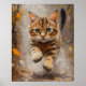 Poster Bengal Cat Leaping Through Autumn Whispers