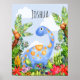 Este lindo design de pôster apresenta um dinossauro aquarela azul pintado à mão e uma selva colorida. O pôster pode ser personalizado com o nome do seu menino. Perfeito para o berçário de um novo bebê ou para o quarto de uma criança que ama dinossauros.