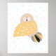 Poster Berçário moderno escandinavo fofo de coruja e estr