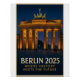 Poster de viagens com o título "Berlim 2025 - Onde a História Encontra o Futuro", com a icônica Porta de Brandemburgo brilhando sob luzes ouro à noite