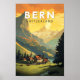 Design de viagem de vetor retrô de Berna. Berna, a capital da Suiça, é construída em torno de um cantor no rio Aare.