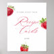 Berry in love bridal shower 'Recipe Cards' sign with a minimalist watercolor strawberry design and elegant script.