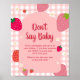 Torne o seu evento especial com este Chá de fraldas de Morango com a nossa bela e adorável impressão Don't Say Baby Sign apresentando um tema de Chá de fraldas Gingham adorável. Baixe, personalize e crie memórias duradouras com este toque perfeito para sua celebração alegre! BS1019