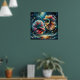 Poster Betta Fish Dance em Bolhas de Deep Blue Ocean
