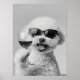 Poster Bichon Frise Holding Wine Wall Art, Black and Whit