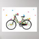 Bicicleta antiga vintage com flores e pássaros coloridos, ilustração artística, desenho vetorial.
