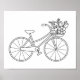 Poster Bicicleta com Página de Coloração da Cesta de Flor
