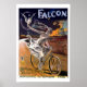 Um poster vintage de Jean de Paleologue para Franco American Bicycle Co. por volta de 1893. Uma mulher vestida de fofoca andando de bicicleta. Um falcão branco senta-se na mão dela.