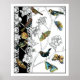 Pôster Birds and Butterfly on a Black & White Background