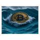 Bitcoin Münze in den Wellen zeigt eine kunstvolle Interpretation einer Bitcoin-Münze, die von lebendigen Wellen umgeben ist. Das Design erzeugt eine harmonische Verbindung zwischen der digitalen Wirtschaft und den natürlichen Elementen des Ozeans.