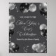 Get ready to ring in the New Year with this black and silver glitter balloons design. Customize the details for a unique and chic New Year's Eve Celebration.