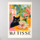 Poster Black Cat Drinking Coffee Funny Matisse Style