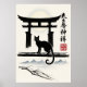 Poster Black Cat Japanese Torii Gate Minimalist Ink easy