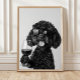 Poster Black Cockapoo Drinking Wine Wall Art, Black and