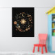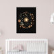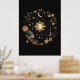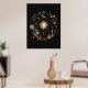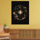 Esta Arte Negra Floral Celestial Boho apresenta Fases da Lua, um círculo floral, o Sol, Estrelas e flores de safra. Esta arte é perfeita para casas boêmicas.