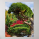 Decorate a living space with this botanical poster print that features the photographic image of a Black Pine tree and Red Japanese Maple in a Japanese garden during the autumn season. A dramatic, botanical design! Customize your poster size as desired.