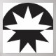Torre de sol brilhante, estrela de Deco, preto e branco. Design abstrato minimalista fala sobre o entrelaçamento universal da vida. Lembrança de yin yang. Clássico e legal.