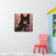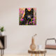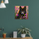Poster Black wolf in pink flowers