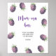 Cartão de convite para chás de fraldas em forma de grão com ilustração aquosa das amoras. O texto diz "um bebê doce de fruta está a caminho." Itens correspondentes disponíveis.