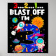 Poster Blast Off I'm 3 Years Old 3rd Birthday Spaceship A