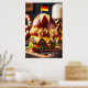 Encaixe-se no sabor da Baviera com este hambúrguer de Beerhouse Alemão. Um pedaço de carne de bovino grosso, fustigado por bratwurst, grelhado à perfeição, é tocado com queijo de gouda derretido, molho picante, e uma generosa disseminação de mostarda de grãos inteiros. Todos aninhados dentro de um pão de pretzel acabado de cozer. Uma pequena bandeira alemã adiciona um toque de talento bávaro, enquanto um fundo desfocado mostra uma caneca de cerveja de cerveja gelada, completando a cena festiva.