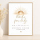 Um pequeno raio de sol está a caminho! Perfeito para uma menina, menino ou celebração neutra em termos de gênero, este design minimalista e elegante de chá de bebê boho chic apresenta um delicado sol dourado com tipografia moderna em tons de marrom taupe e bronze dourado.