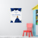 Esta placa de boas-vindas festa de aniversário apresenta flores azuis, azuis e brilhantes marinhos e uma bela princesa com cabelo loiro e um vestido elegante. Isto é perfeito para uma festa de aniversário.